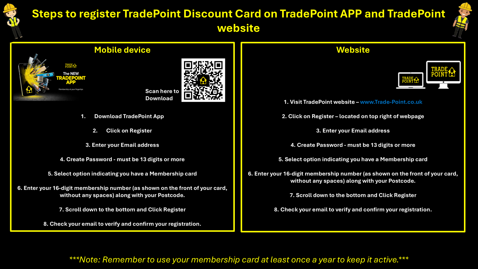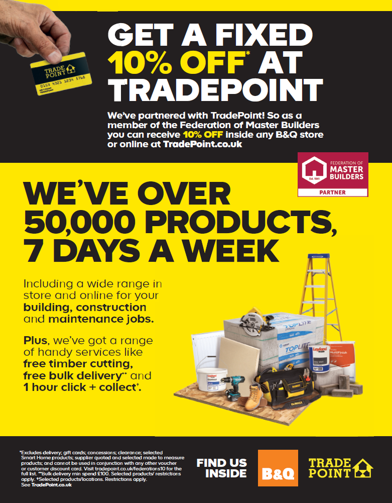 When you join the FMB you will receive a TradePoint card and you can also request more cards for your colleagues by filling in the TradePoint discount card request form. Not an FMB member? Find out more on the Become a Master Builder page.