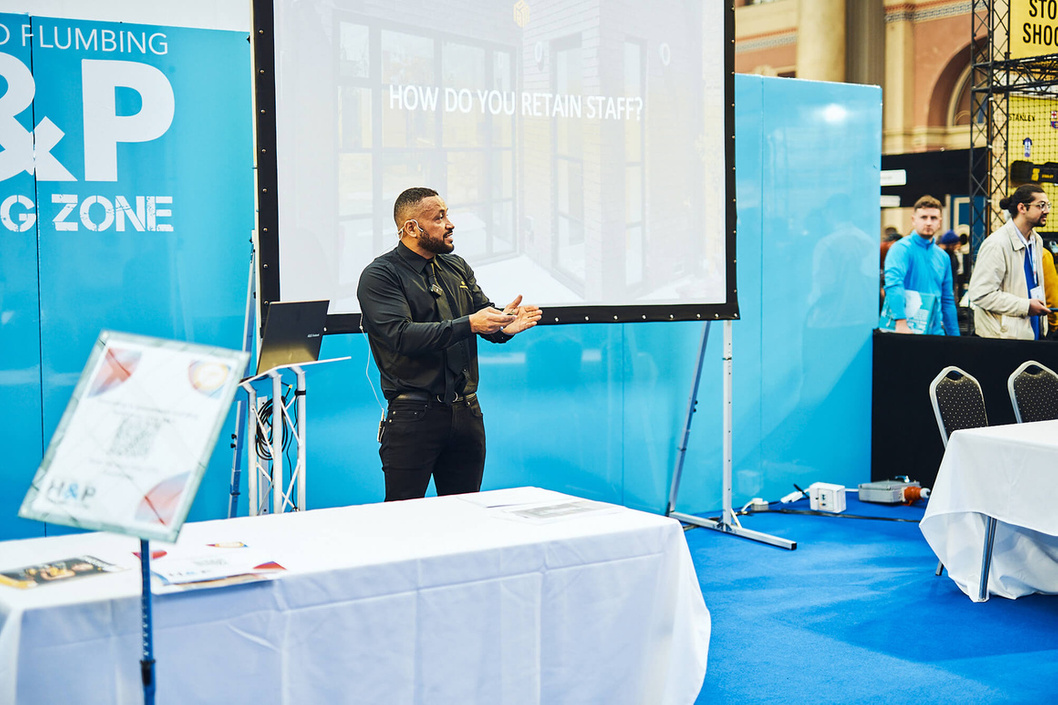 In April I hosted a Q&A with London Member Jay Gentle from Prestige Build Management Ltd at the ToolFair in Alexandra Palace. Attendees gathered to listen to Jay discuss some of the key factors implemented by his business that made them the success they are today.